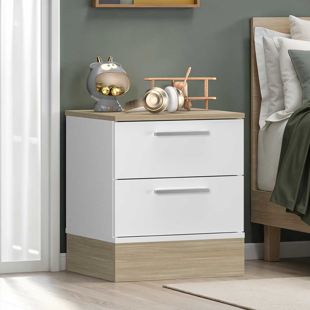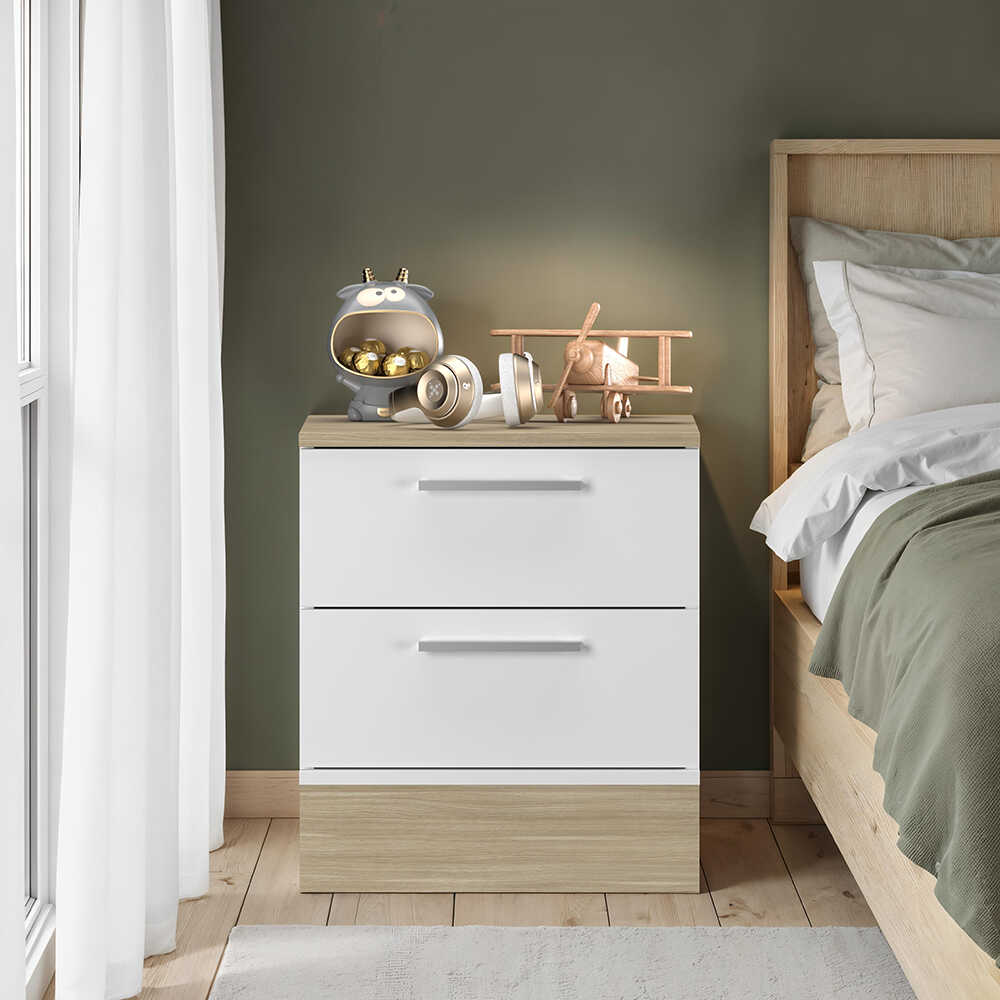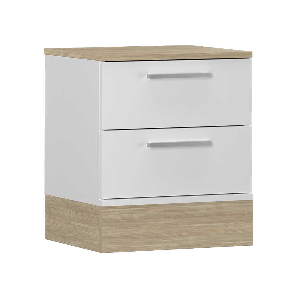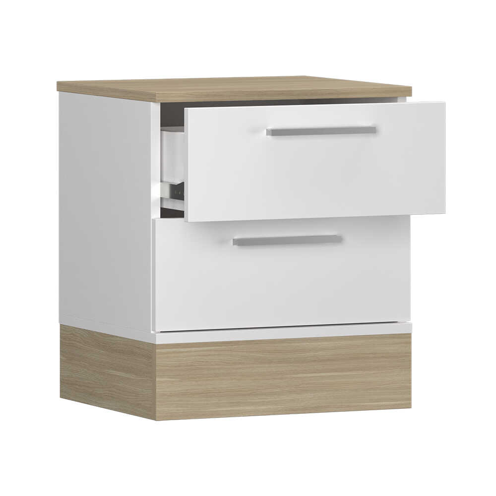 Base 2 Çekmeceli Komodin - İtalyan Meşe-Mat Beyaz 45x52x40 cm (GxYxD)