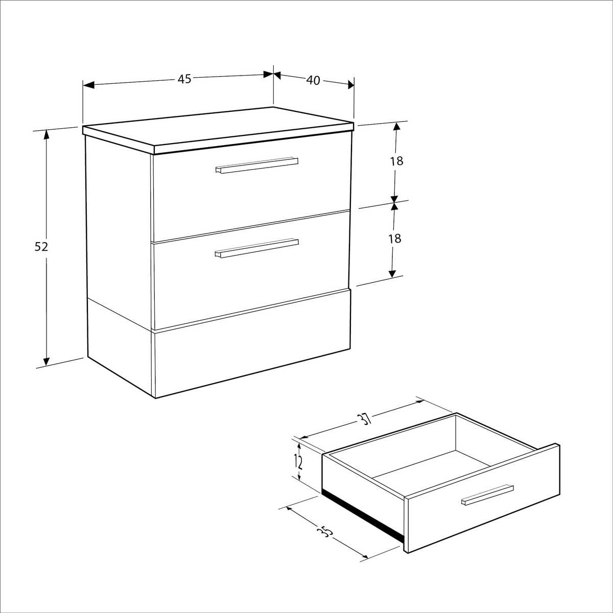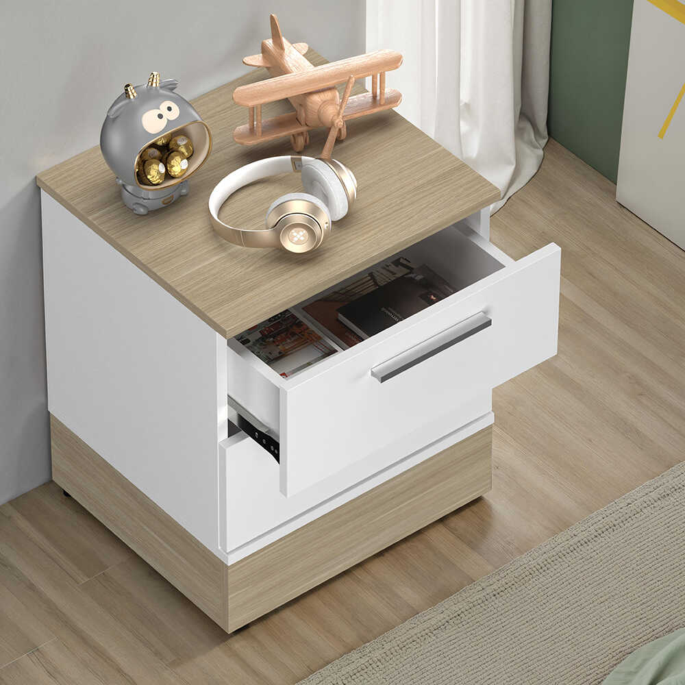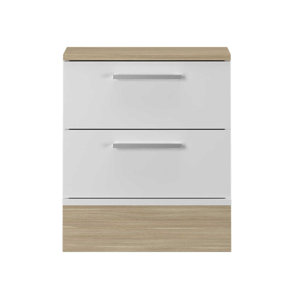 Base 2 Çekmeceli Komodin - İtalyan Meşe-Mat Beyaz 45x52x40 cm (GxYxD)