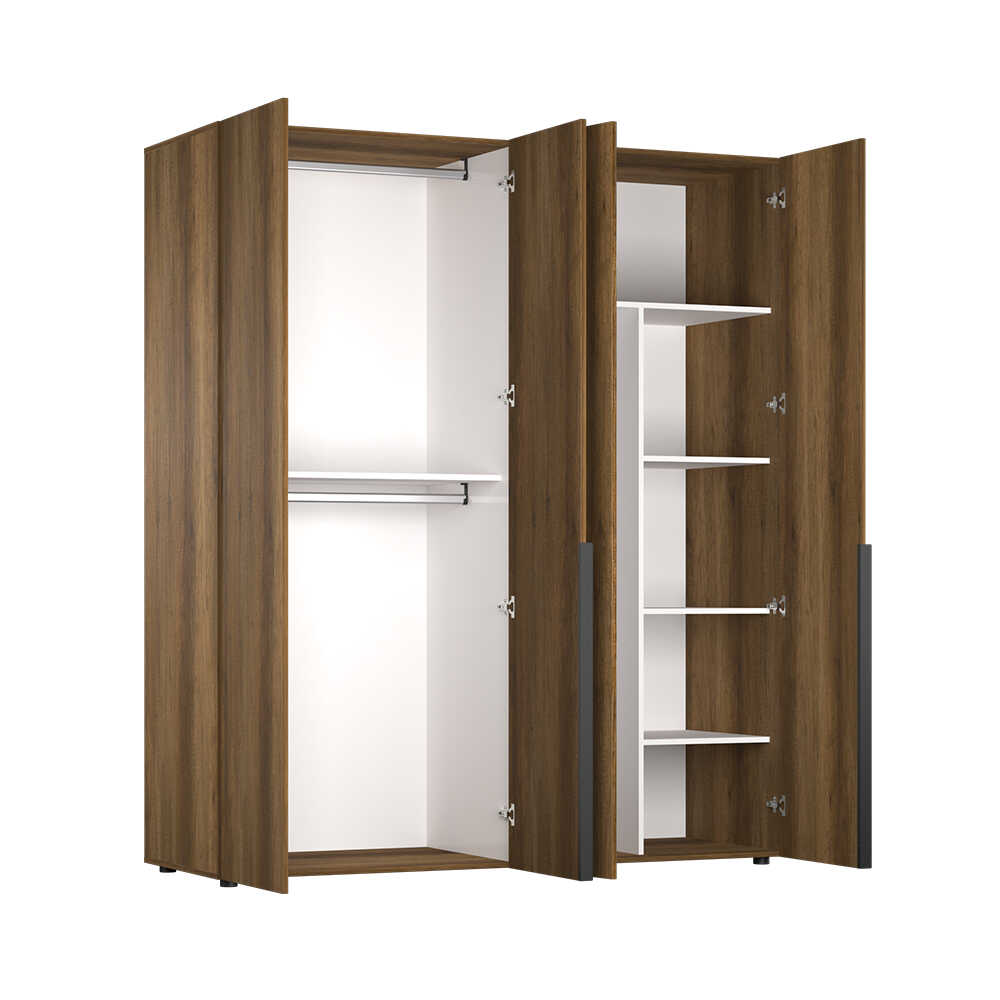 Oryana 4 kapaklı gardırop-koyu ceviz rengi ile sıcak ve samimi bir ortam elde etmeniz için olanak tanırken aynı zamanda konforlu bir alan yaratmanız içinde destek olacaktır. Kusursuz bir dekorasyon tarzı için kendi zevkinize uygun renk tonları ile farklı tarzlarda mobilyalar ile de meç edilebilmesi ise takdire şayan bir görünüm elde etmenizi destekleyecektir.